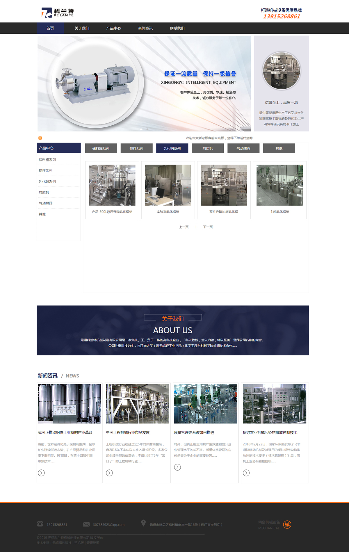 無(wú)錫科蘭特機(jī)械制造有限公司是一家集技、工、貿(mào)于一體的高科技企業(yè),“科以致新,蘭以治德,特以至美”是我公司名稱(chēng)的寓意。公司注重科技為本,與江南大學(xué)(原無(wú)錫輕工業(yè)學(xué)院)化學(xué)工程與材料學(xué)院長(zhǎng)期技術(shù)合作,及時(shí)了解各化工產(chǎn)品的最新生產(chǎn)加工工藝,結(jié)合各行業(yè)的國(guó)家生產(chǎn)技術(shù)要求指標(biāo),為客戶提供既能滿足生產(chǎn)工藝又符合各項(xiàng)國(guó)家技術(shù)指標(biāo)的各類(lèi)化工生產(chǎn)設(shè)備、存儲(chǔ)設(shè)備的設(shè)計(jì)加工。同時(shí)對(duì)用戶提出的各種特殊生產(chǎn)工藝,作出相應(yīng)的設(shè)備結(jié)構(gòu)調(diào)整,以滿足客戶的特殊要求。公司全體員工攜手為化妝品、洗滌劑、電池、聚合物、精細(xì)化工、石油化工、制藥、食品等行業(yè)提供優(yōu)質(zhì)的機(jī)械設(shè)備和完善的服務(wù)。